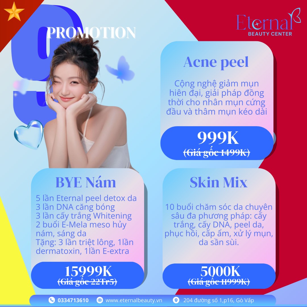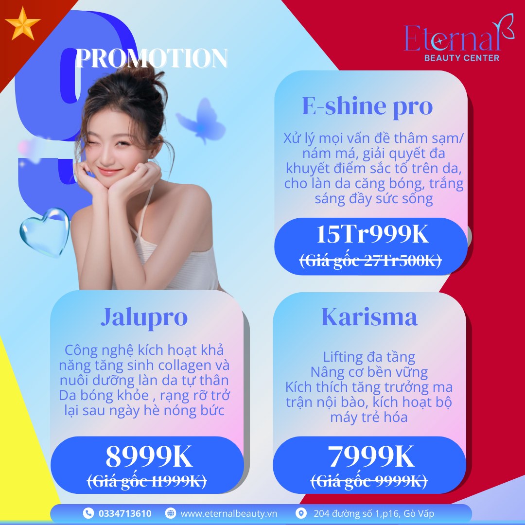 Eternal Beauty Center gửi tặng bạn chuỗi ưu đãi siêu đặc biệt trong tháng 9, giúp bạn sở hữu làn da khỏe đẹp, căng mịn và rạng rỡ hơn bao giờ hết.
